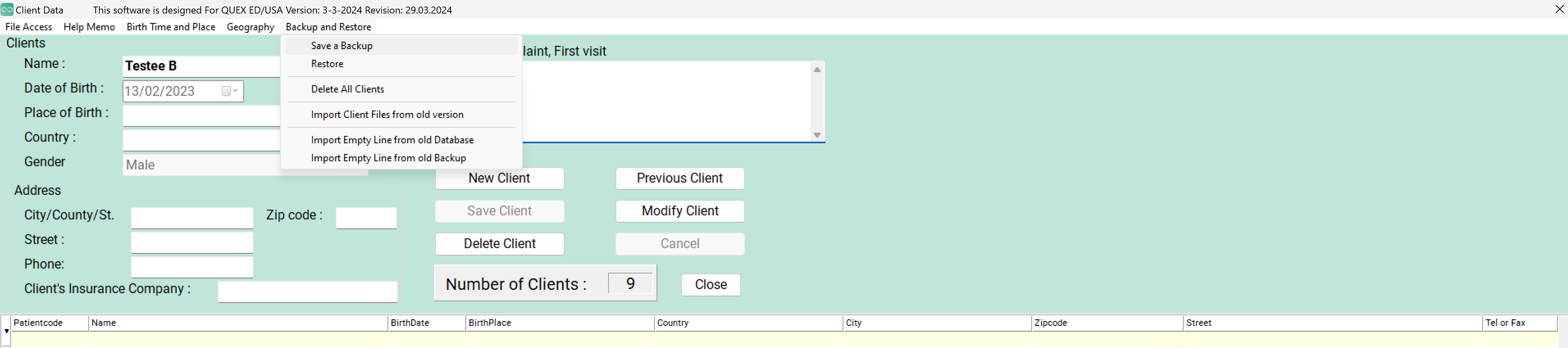 - When you create a client backup in Omnis from the Demographics Menu: